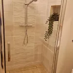 Værelserne har udsigt til floden. Et badeværelse består af separat toilet, et badekar og en bruser.
